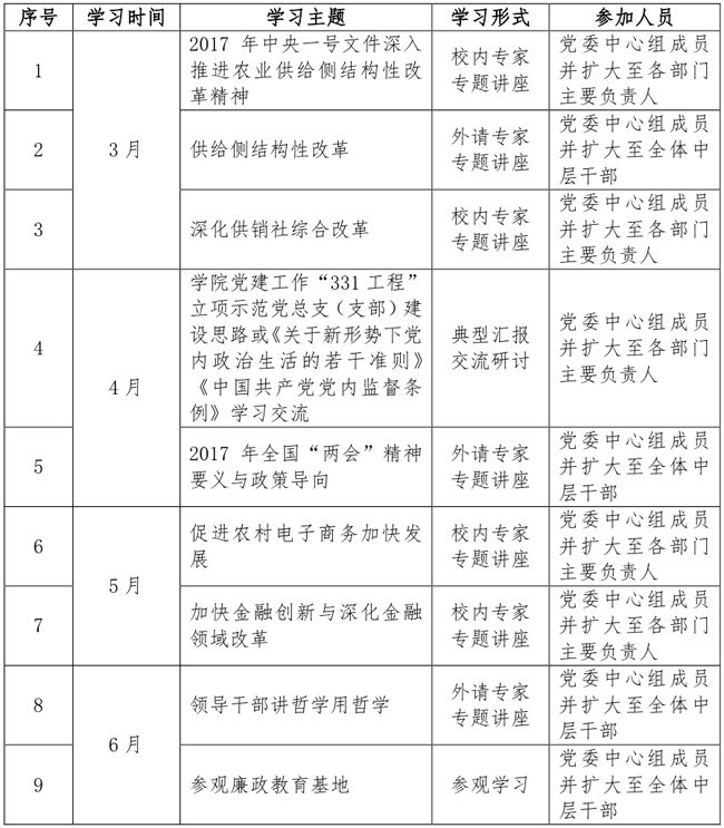 学院党委中心组2016—2017学年第二学期理论学习计划