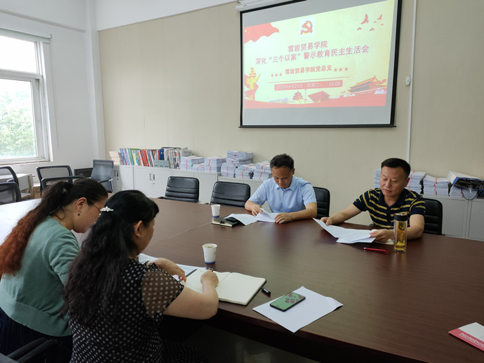 6月23日下午,雪岩贸易学院党总支召开深化“三个以案”警示教育专题民主生活会,学院党委书记张志祥到会指导。