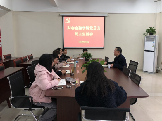 2月1日上午,财会金融学院党总支召开2020年度民主生活会,学院党委副书记、院长刘银国到会指导并讲话,财会金融学院党总支及班子成员参加会议。
