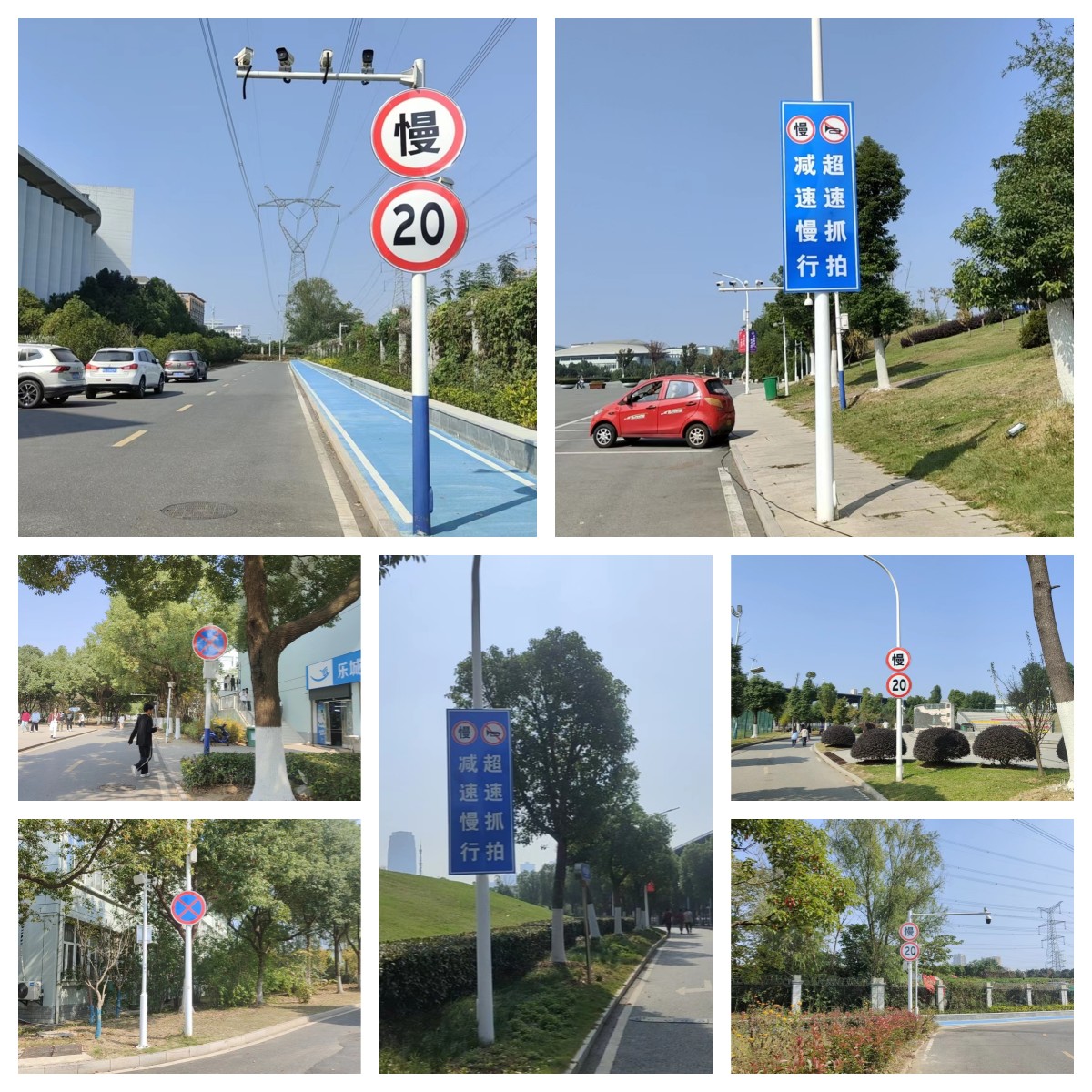 为进一步优化和完善校内道路交通标牌系统,确保校园交通安全、畅通、有序。10月29日上午,总务处(党委保卫工作部)对校内交通标志牌进行了规划设计,共安装限速、慢行、禁停、禁止鸣笛和减速慢行、超速抓拍等标志牌16块。