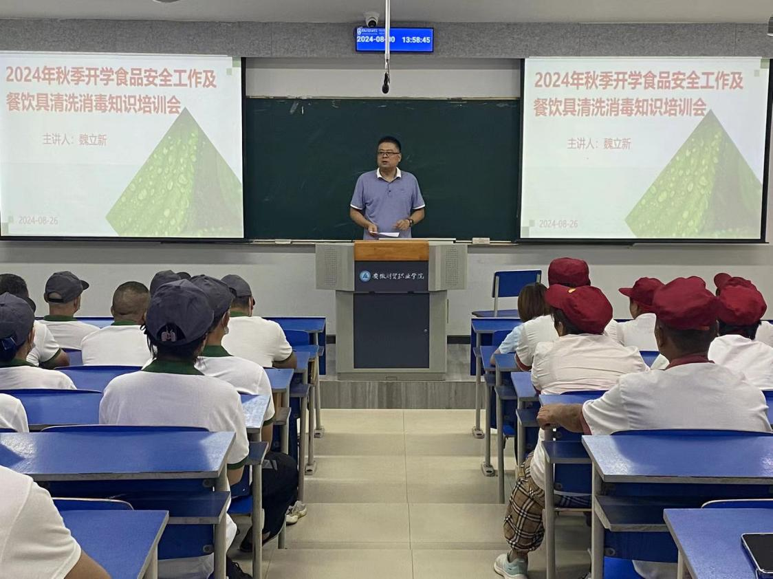 为进一步提升学校食品从业人员食品安全意识,进一步规范复用餐饮具清洗消毒流程,切实保障广大师生饮食安全,8月30日下午,总务处在5101教室举办了秋季开学校园食品安全暨复用餐具清洗消毒知识培训会。总务处服务中心、学生餐厅、超市等校内从事食品相关工作的人员参加了会议,培训会由总务处副处长魏立新主讲。